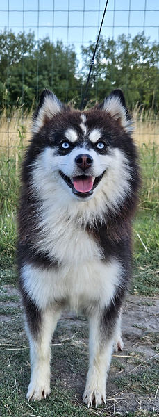Le Pomsky est un chien issu d'un croisement . En effet , il est issu d'un croisement entre un husky ou un malamute et d un spitz ou un pomérian. De ce fait , cette race n'est pas reconnu par la FCI , ce sont donc des chiens non LOF . Ce parfait mélange sélectionné et équilibré, rend ce chien un parfait compagnon de famille. Il y a trois tailles bien distinctes , qui s adapterons parfaitement a votre mode de vie . Le toy pèse moins de 6kg pour une taille max de 29 cm. Le mini pèse entre 6 et 9 kg pour une toise allant de 30 à 39 cm. Le Standard pèse entre 9 et 20 kg pour une taille de 40cm à 46 cm . Votre Pomsky sera donc un parfait compagnon dans toutes vos avantures , que vous soyez passionné de sport , ou que vous viviez en ville , votre pomsky sera s adapté a vos attentes . Du fait de la rigueur de la selection de nos pomsky , nous avons réussi a tiré le meilleur de nos chiens . Des chiens sociables , non destructeurs et le plus important non fugueur .